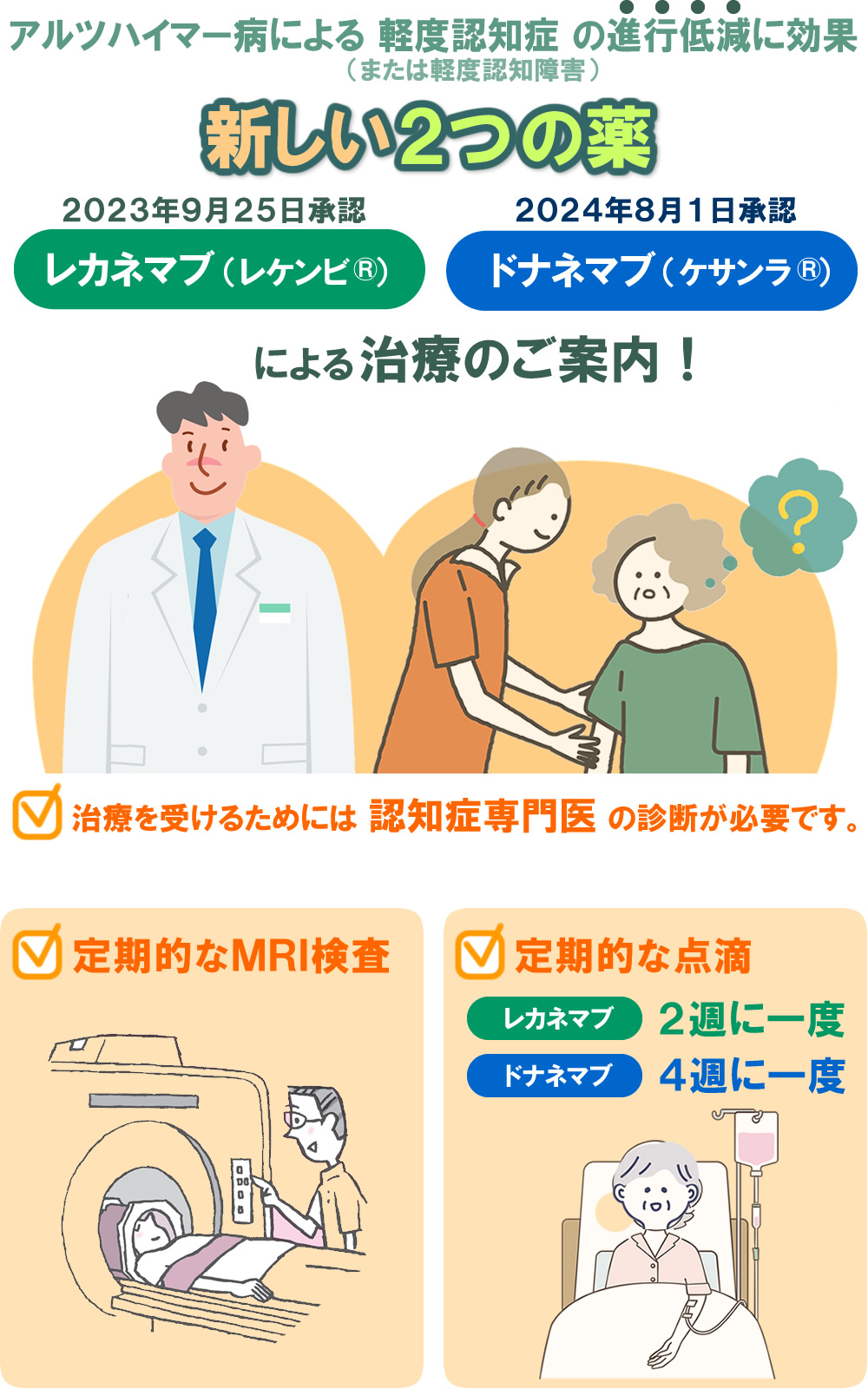 アルツハイマー病は、脳にアミロイドβというタンパク質が蓄積し、徐々に記憶力や判断力が低下する病気です。この進行を遅らせるための新しい治療薬が、済衆館病院でも導入されています。