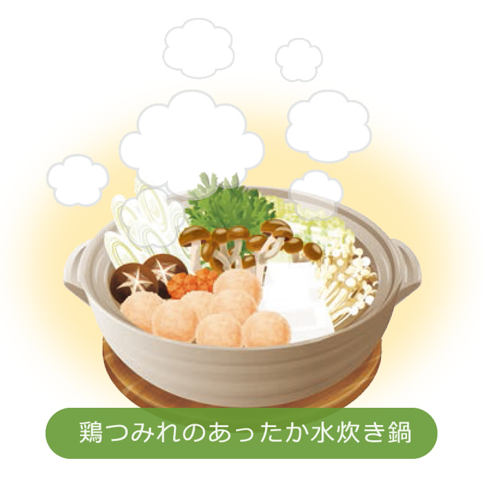③鶏つみれに火が通ったら、残りの具材を加えて、ひと煮立ちしたら出来上がり。